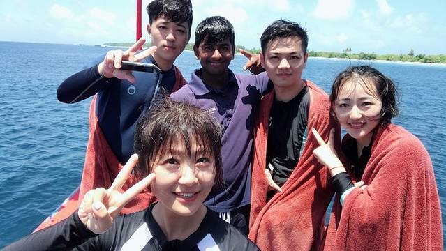 他们一上岛就预定行程,真的很幸运和我们接下来的寻鲨、垂钓都是同一时间。