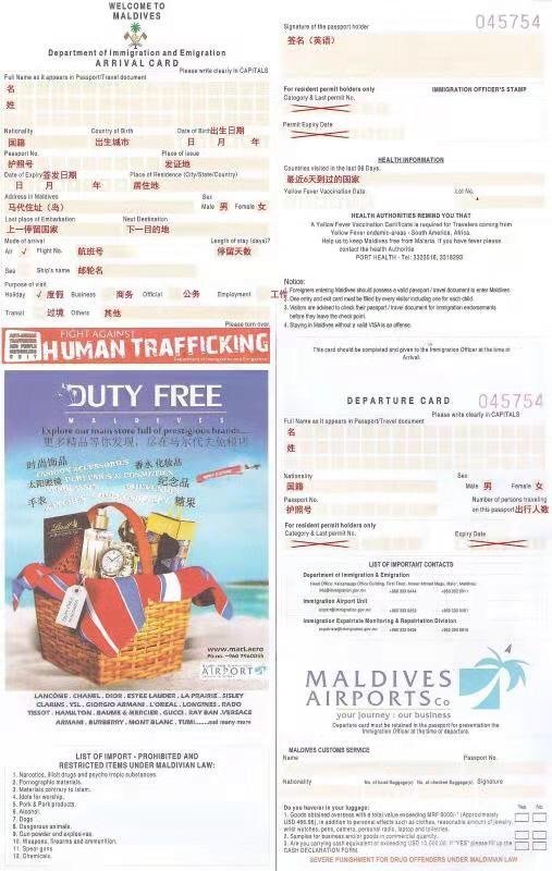 马代是落地签,签证什么的不用担心,下飞机前填好入境单就可以了。(最好带个笔比较方便)