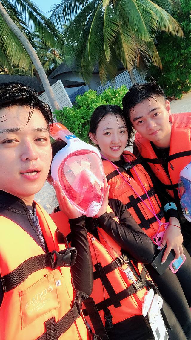 从居民到回来已经中午了,吃完午饭我们就开始浮潜,岛上有很多位置适合浮潜,水屋附近是最好的,但是浪大,会游泳的可以去,我们俩都算是浮潜爱好者,虽然我不会游泳,但是有救生衣感觉很安全,而且很简单,个人感觉不需要去浮潜中心学习。(救生衣每个房间都会准备两个,不需要去租)