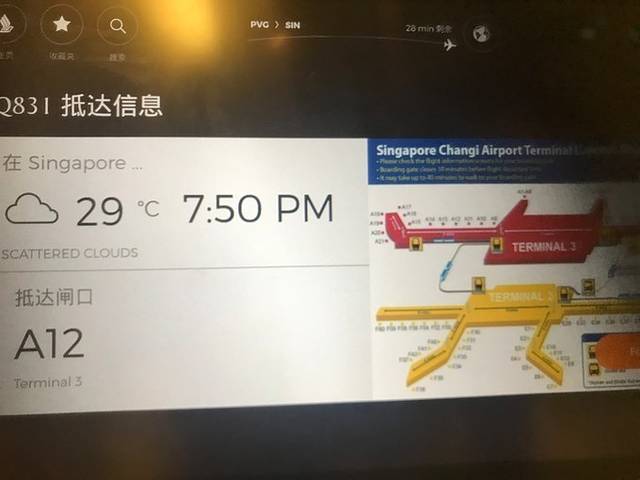 飞机上可以查到 新加坡 转机的信息,到哪个航站楼几号口登机,大家最好记一下,因为转机时间真的挺赶的,跟我们遇到的一对情侣就蒙圈了,不知道在哪里转机,幸好我们提前记下了登记口。
