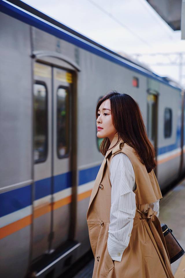 车站里有两座岛式月台,人不多,空间很大,光线好的话很适合拍照,月台上薄荷绿色的柱子都很清新。