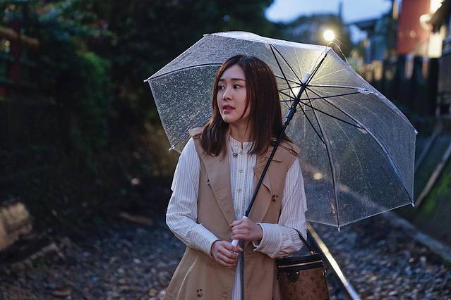 下了火车一出站发现下起了毛毛雨,顺道买了一把透明伞,拍起照也很有感觉呢。