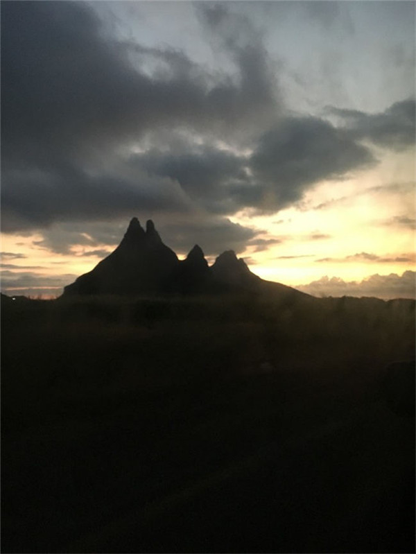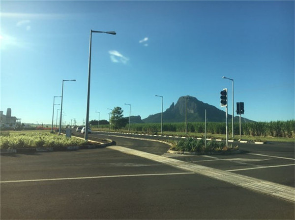 机场在毛求的东南部,司机开了1个小时才能到西部,一路上天已经开始黑了,一路上看到了火山,和大片的甘蔗地。