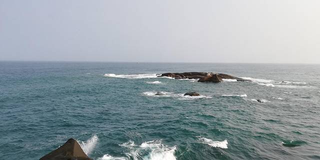 遥望大海,就看到了在海水中挺立的爱情石