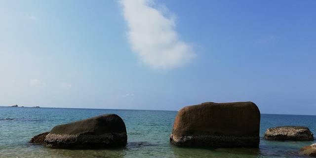 石头上海水星罗棋布,蓝天白云倒映,景色旖旎,从铜鼓岭流下的山泉与海水汇合到海沟里,情趣盎然。