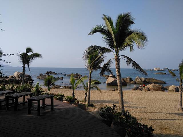 椰树成林构成一幅美景!虽然不能与三亚相比,尤其是海水的干净程度,但是在海边,散散步,看看海,吹吹风,心情舒畅极了!