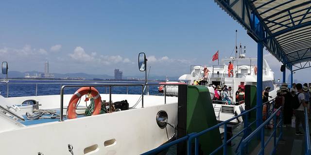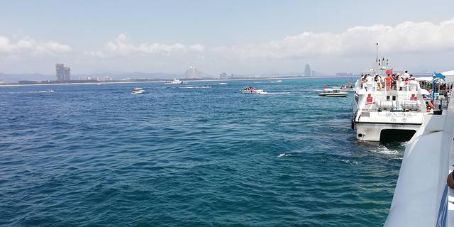 离开蜈支州岛了!蜈支洲上各种玩水项目特别多,潜水、游艇、帆船、飞艇各种玩法,不光是天蓝水清同时也是带小朋友或者年轻人玩水的好去处。