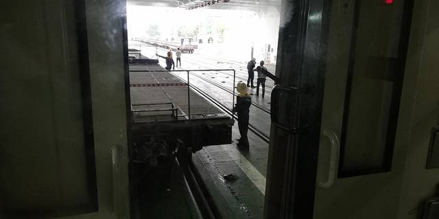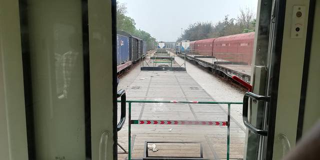 乘火车过海了!已登上过海列车了!列车上的所有乘客是不能下车的!