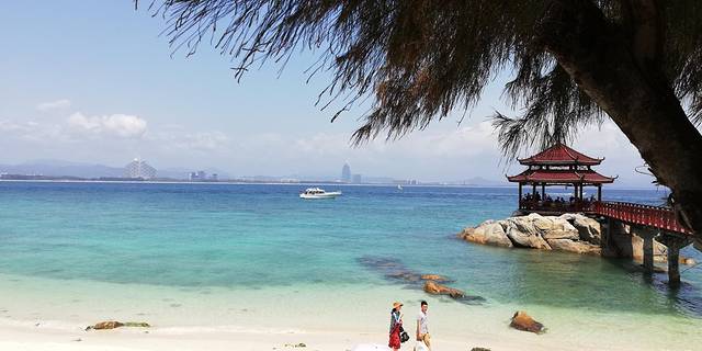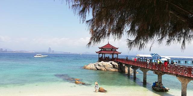 蜈支洲岛的风景很好,岛上一派热带风光。这里海水能见度高,水下世界绚丽多彩,是我国热门的潜水胜地。