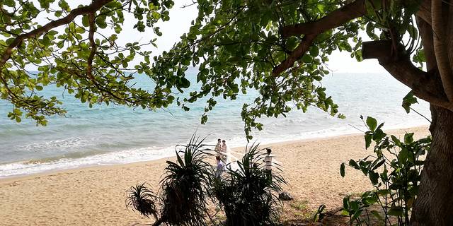 随时都可以看到拍摄婚纱照的。海里游泳与淡水河里游泳有点区别,海水浪很大推到在水是漂浮移动者很是爽!