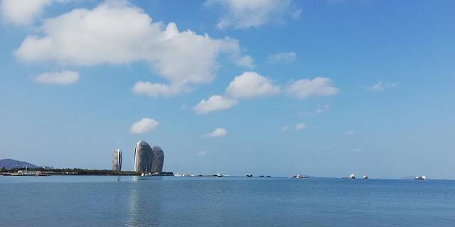 早晨出发途经凤凰岛时,蓝天、蓝色海、天空的白云浮现在眼前!