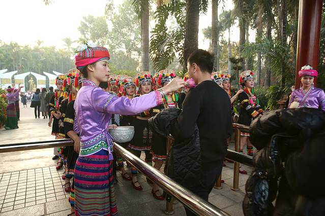 在入口处有哈尼族的美女和帅哥,在你进入他们的队形时会扭起屁股撞你的屁股,对于外来客人会有点“尴尬”,并不需要尴尬,放开你的心,和他们热情的碰撞吧,接受他们最热情的欢迎仪式。