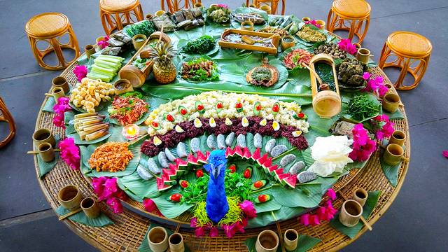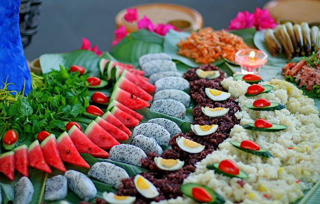 去 西双版纳 怎么能不好好的享受一顿特色的傣家美食呢? 西双版纳 傣族地区以产米为主,所以当地以米为主食。竹筒饭、菠萝饭和手抓饭也就成了是 西双版纳 的主食。香茅草烤鸡、香茅草烤鱼在傣家的食谱中是不可缺少的,也是宴请贵宾和来客上桌菜。曼听公园的vip餐厅以及傣家园的傣家农家乐是不可错过的舌尖上傣家美味。