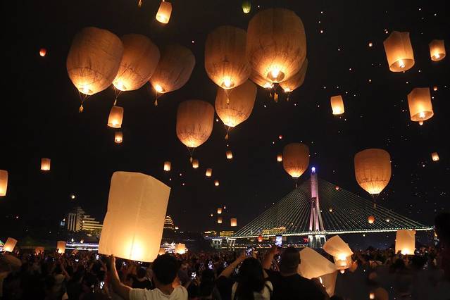放飞孔明灯,带上祝福,放飞希望!在一些节日里,我们也会放飞孔明灯,但是基本是没有什么规模,就是三三两两的孔明灯放飞在空中。在泼水节的第一天, 西双版纳 的傣族人民,会带上孔明灯,走到澜沧江 边,许下心愿,放飞孔明灯。整个版纳的空中都飘着孔明灯,黑色的夜一下子变的明亮起来,点缀版纳的夜不是星空,是带上祝愿的“暖色的夜空”!