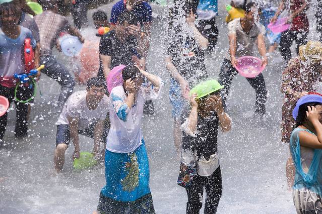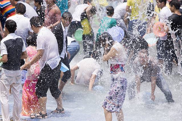 泼水节最重要的也是最壮观的庆祝节日的方式就是泼水。在阳历4月13日至15日这三天,15日这一天是全民泼水送祝福的一天。在4月15日这一天,整个 西双版纳 的傣家人都会带上自己的泼水工具,走到大街上,用泼水的方式庆祝一年一日的泼水节,用泼水的方式祝福每一个“湿身”的人来年顺顺利利、平平安安。