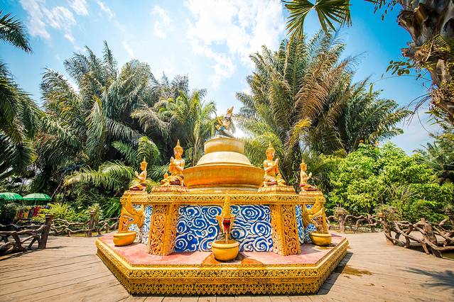 作为 西双版纳 最古老的公园,曾是 西双版纳 傣王御花园,有着1300多年历史的曼听公园,有“傣族王室文化、傣民俗文化、佛教文化”三大特色。傣族习惯把曼听公园称作“春欢”,意为“灵魂之园”。传说傣王妃来这里游园赏玩时,被这里的美丽景色吸引了王妃的灵魂,因而得名。