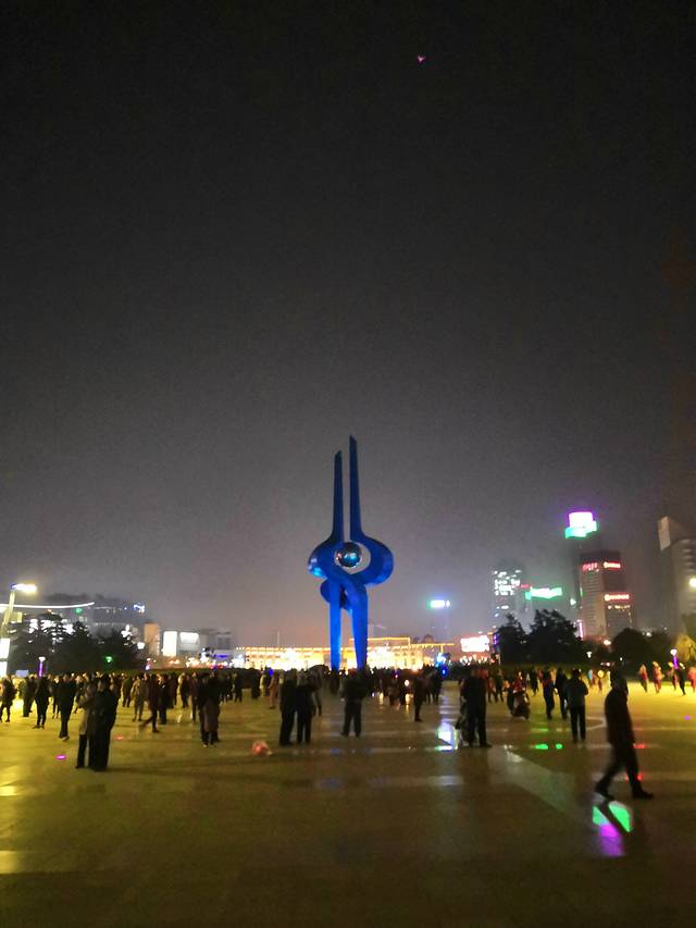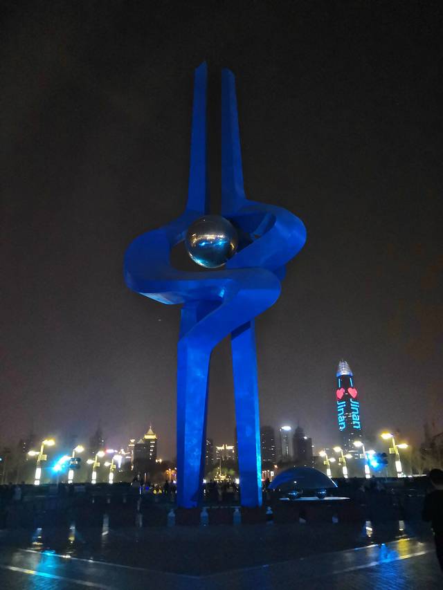 从宽厚里出来眼看着夜幕就要降临,想起济南的地标性建筑——泉城广场,还没有看,于是赶紧骑上共享单车直奔泉城广场。