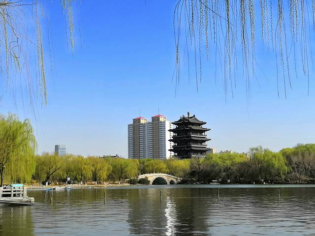 杨柳依依,春色宜人,济南的春天比天津来的早