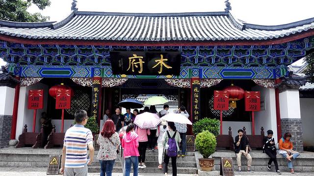 吃完饭,根据路牌指引,我们顺利找到此行第一个景点——木府。60元的全价票,30学生票,在门口等一小会就会有免费讲解。木府是以前土司的住所,十分气派与富丽堂皇。