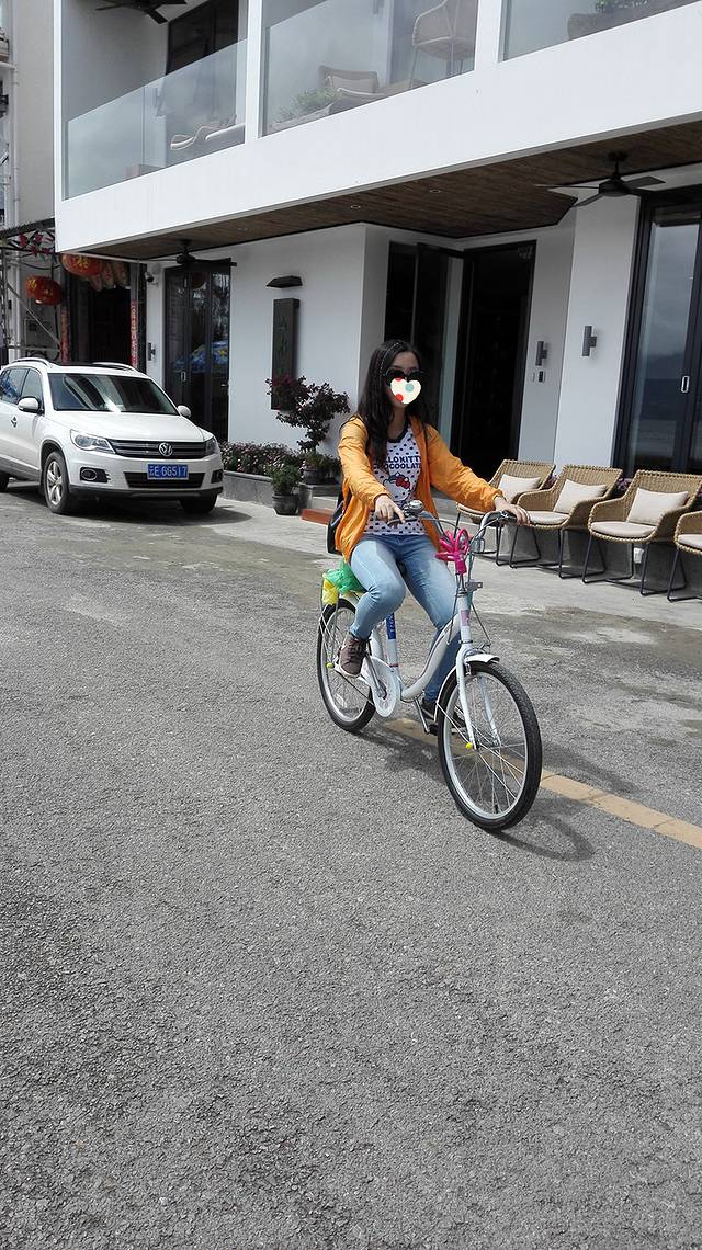 在附近的车行搞了两辆自行车。不是山地车,也不是电马儿,因为我们都不会骑,我们骑的是最费劲的那种。25块钱一天一辆,晚上8点前还,交了50押金和个身份证,我们出发了。