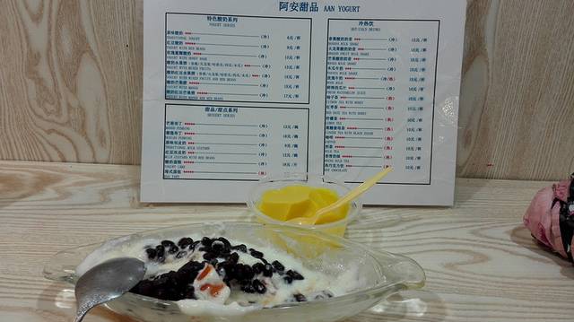 我们又去逛了一圈,没想到逛回来的时候一家甜品店。它家的招牌有红豆酸奶、芒果布丁、酸奶红豆木瓜捞还有双皮奶。我特别喜欢芒果布丁,味道很浓郁,原谅我吃了大半才想起来拍照。