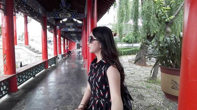 从五华楼下来,没走几步看到一家拍艺术照的。闺蜜一直都想拍一套,于是我们便花了2个小时的时间:化妆、换衣服、拍摄、刻盘,最终成型下面的效果图。我们拍摄的时候好多游客都拿着手机相机拍我们,有些还过来请求和我们合影,突然有种明星待遇啊。人家美吗~