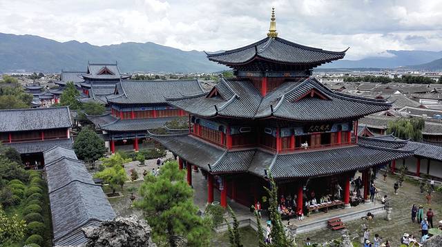 木府最高处的三清殿,可以领略 丽江 古城的全貌。闺蜜还在这儿求得一个上上签,运气来登啊。
