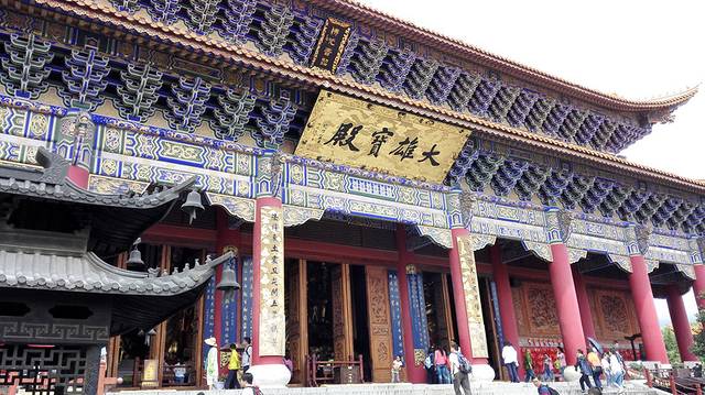 往下走是 东南亚 最大的大雄宝殿,它的偏殿就是天龙八部里段誉(原型为 大理 国第十六位皇帝——段正严)的出家地。