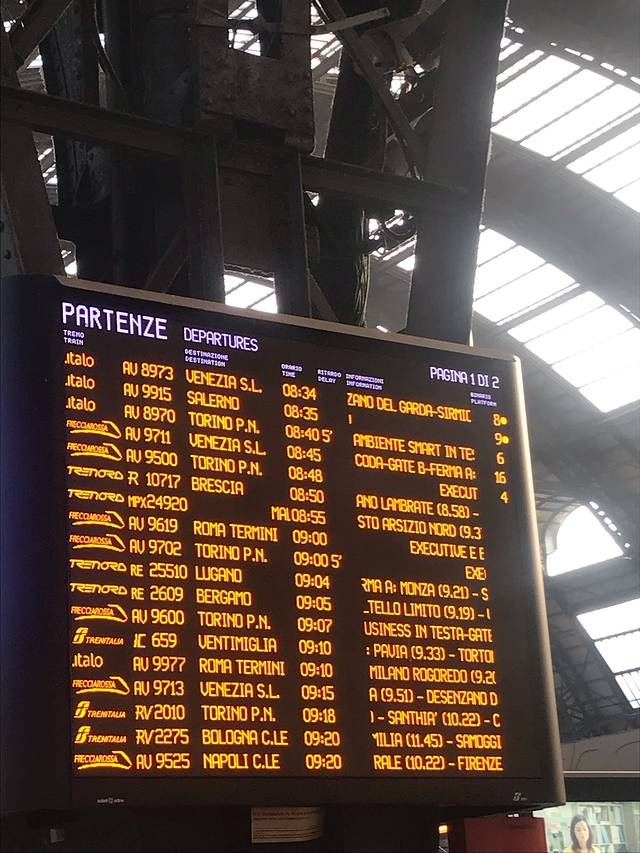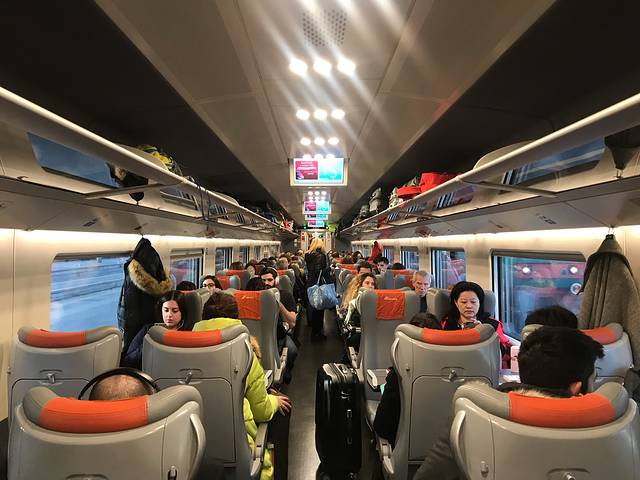 这次意大利之行的交通工具主要是高铁和地铁,作为一名铁路人,特别想体验一下当地的铁路,发现特别的方便和快捷,因为不用安检和检票,直接上车,车上有一名工作人员查票。我们一共乘坐了三趟高铁,分别从米兰到弗洛伦萨,从弗洛伦萨到威尼斯,从威尼斯到罗马。所有的火车站都是开放式的,乘客都在站台候车,还可以携带宠物上车,高铁的上座率还是比较高,车上的设施设备配备都较好,有Wi-Fi,但信号不好,有自助的咖啡机和售货机,没有服务人员,源于欧洲的人工成本较高。每趟车都会有工作人员查票,千万不要有侥幸心理,买了票最踏实。