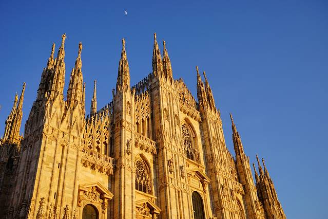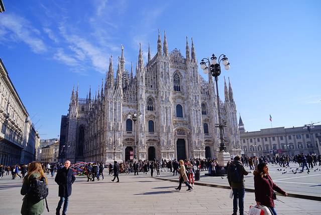 在各种游记中看到过很多次米兰大教堂,但到了现场还是被深深地震撼到。怎么形容了,无与伦比、精美绝伦、巧夺天工、叹为观止,好像这些词都不为过。教堂规模世界第二,哥特式的建筑风格,纯白大理石打造,通体雪白,在不同时段太阳光线的照耀下,呈现出不同的颜色。