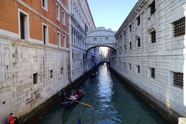 叹息桥,连接总督府和威尼斯监狱的石桥,是古代死囚的必经之路,因死囚的叹息而得名