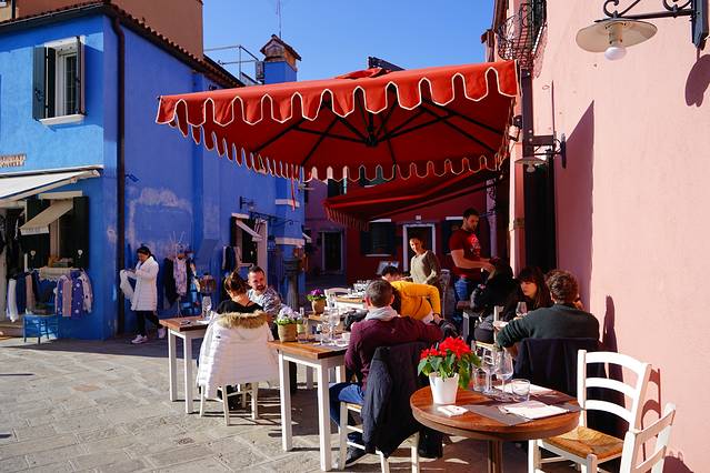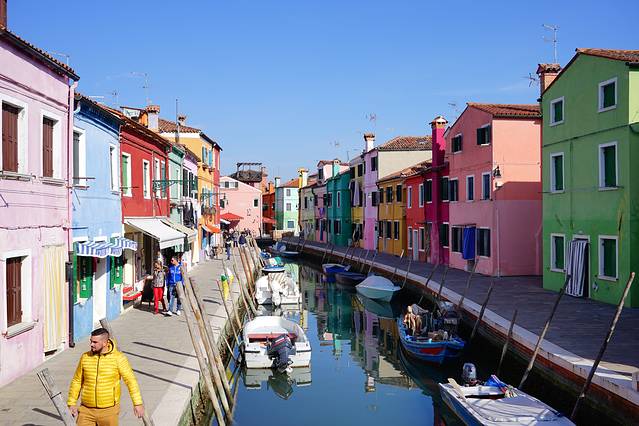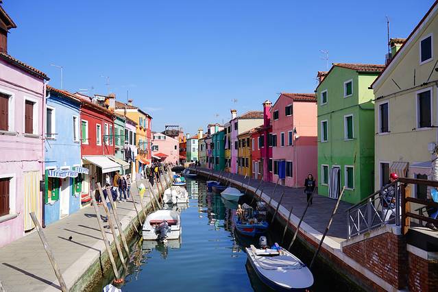 威尼斯布拉诺岛(Burano)又称为彩色岛,当地人曾以打渔为生,为了方便离家的男人能轻易找到房子,主妇将房子刷得五颜六色,色彩斑斓。这个岛充满了艺术气息,家家户户的窗户上都种满了鲜花,五彩的房屋倒映在河道中,仿佛就像进入了童话般世界。