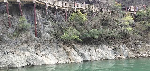 观完油菜花,坐上公交到汉中中心广场转公交,直接抵达石门栈道风景区,风景区顾名思义,以石门栈道出名,建议大家提前网上预定好门票,一方面会比景区门口便宜7元,另一方面不需要取票,直接凭二维码进入,免去了排队购票/取票的时间。景区内除了栈道还有水坝,滑索,快艇可以乘坐,滑索来回40元,惊险刺激,可以尝试一下(我没有去,实在恐高...),快艇有5人船,7人船,9人船,建议7人船,排队快,开的也快,我跟别人拼船,一人40元。