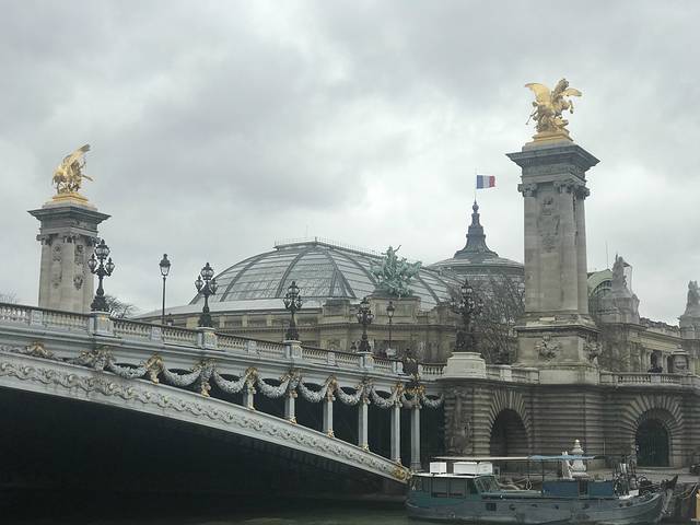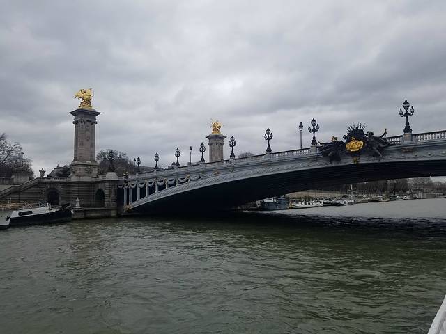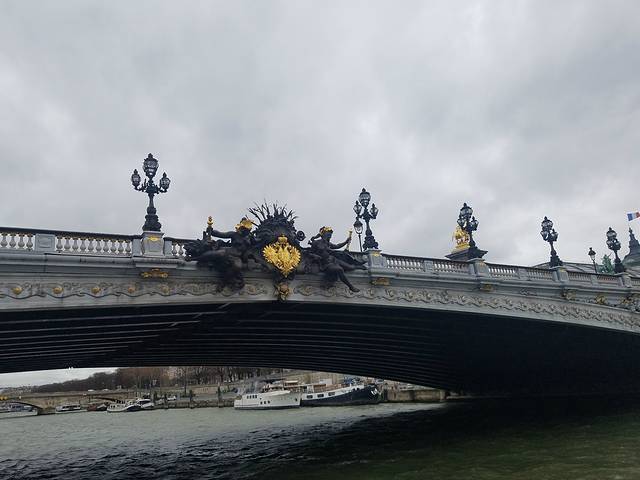 塞纳河上有30多座桥,每座桥的造型都各具特点,其中最壮观要数金碧辉煌的亚历山大三世桥。这座桥以其独一无二的钢结构桥拱,将香榭丽舍大街和荣军院广场连接起来。大桥两端四只桥头柱上镀金的雕像,由长着翅膀的小爱神托着,桥栏上的雕塑也是金光闪闪,它的华丽造型和色彩在塞纳河上特别显眼。巴黎最古老的桥有三座:玛力桥、王桥和新桥,这三座桥都是17世纪前建的,距今300多年了。