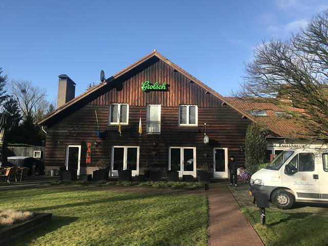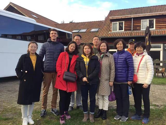 我和领队当地的大巴司机和部分团员在阿姆斯特丹乡间别墅前的合影