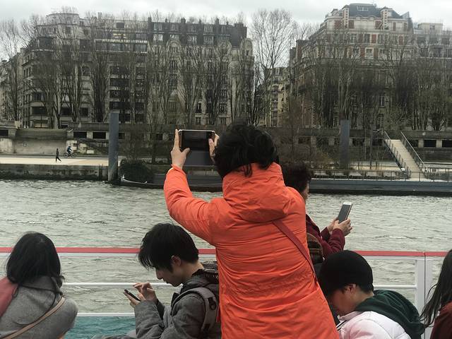 坐上游船的人也都 纷纷拿起了自己的武器——手机在与巴黎“对话”。