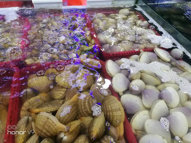 先介绍下吃海鲜的几种方式,第一种方式是去海鲜饭店吃,我们住的蓝色海岸楼下就好几个海鲜饭店,海鲜饭店标的海鲜价格是包含了加工费的,称的时候跟老板问清楚再点单,有些海鲜,价格比自己去市场买再找加工店加工的贵,有些差不多,有些还便宜一点。