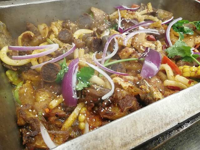 收拾好了之后我俩就出去觅食了。第一顿就吃了炕羊排,真的超大份。