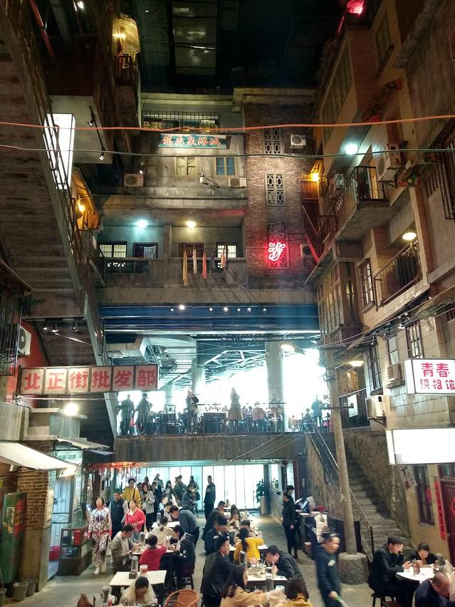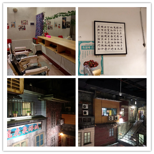 仿旧长沙装修风格,有不同的场景可以免费参观、拍照。用餐环境仿佛置身于居民楼的街道上一般。