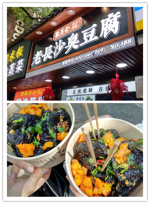 湖南大学的上山口附近有非常多的小吃,两小姐姐上次来长沙吃过说这家臭豆腐非常好吃,强烈要求再吃一遍!