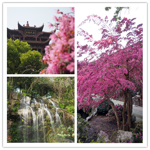 盛开的樱花和杜鹃花、茂盛的竹林,空气清新!