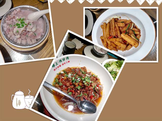 岳麓山下来,由于没吃午饭,提早了一点安排晚餐,晚餐来到了味上肉炒肉,湘菜风味!