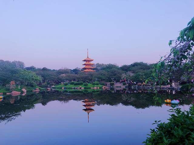并非我们想象中的满樱胜景。零散的几株樱树还在花期,细瞧的话,花瓣也打了蔫。园区有唐风和日式庭院,很多穿汉服和服的小姐姐在樱花下拍照,倒也不觉得违和。游玩的时候可以提前带好桌布和零食,走累了席地而坐野个餐,也是很惬意的。