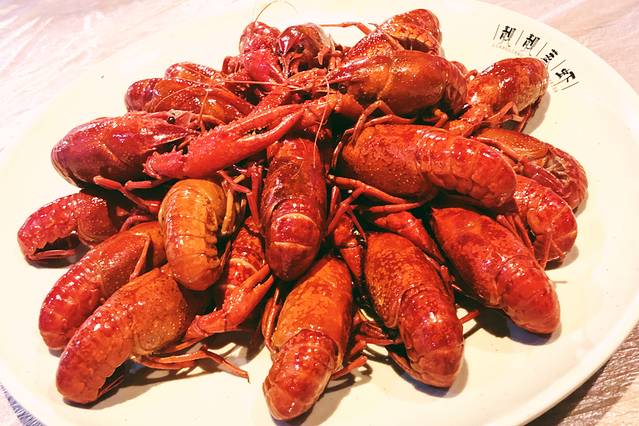 《知音号》结束已经晚上十一点,出门就是曾经上过快乐大本营的靓靓蒸虾,怎能错过。我们点了一份蒸虾一份油焖大虾,虾子都是用的小龙虾。蒸虾清淡,佐以蘸料,可以吃出虾子的本味。蘸料是用蒜片和辣椒油做的,第一口吃油感很重,也没太多味道,吃着吃着就有点上瘾,吃多了就会小腻。油焖大虾味道上就热烈的多了,吃起来比起油焖更像是爆炒。每一口香辣过瘾,拆掉虾头在嘴里用力一嗦,附在虾壳上的汤汁在舌尖上就跳起舞来了。