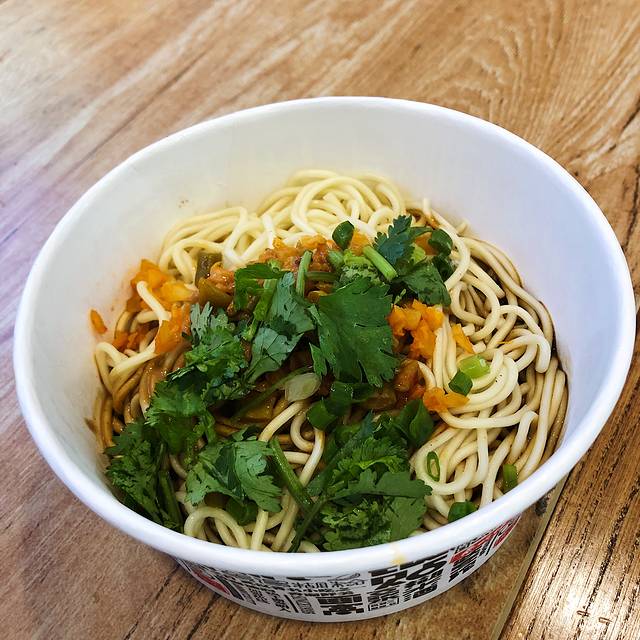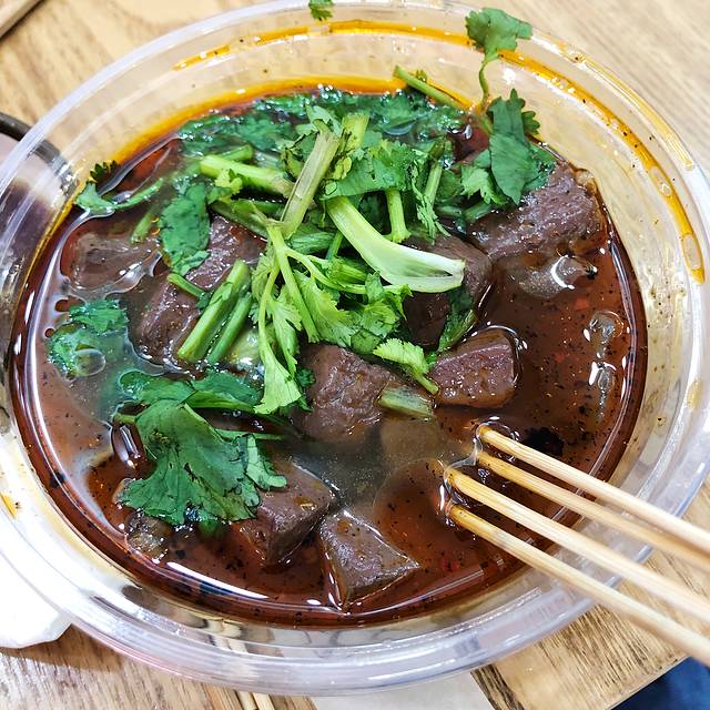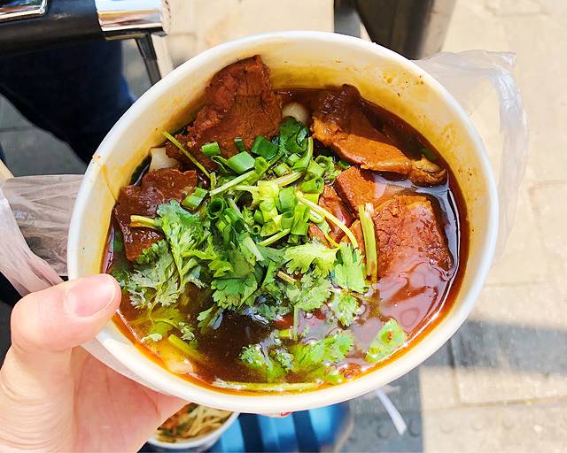 重点说一下牛肉粉,是我爱的没错了。宽粉,番茄牛腩的汤头,虽然番茄的味道淡到尝不出来,但肉汤鲜美十足了,再抓上一把香菜,嗦一口宽粉,伴上一片厚薄适中又软烂的牛肉,28度的烈日下,即使穿着毛衣也心甘情愿了。