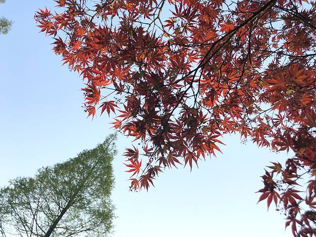 赏樱胜景之一。可惜我们清明去的时候错过了花期,爬坡樱园,只剩下绿叶的樱树了。