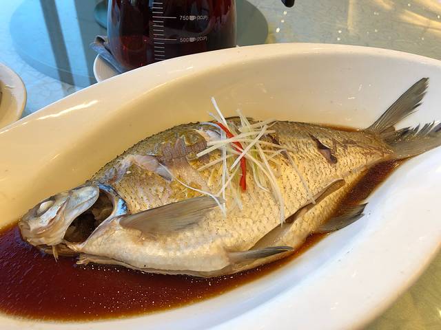 清蒸武昌鱼,超大的一条只要38元。火候掌握的很好,鱼刚刚断生,虽说是清蒸,汤汁有一点焦糖的味道,搭配葱丝来吃很美味了。