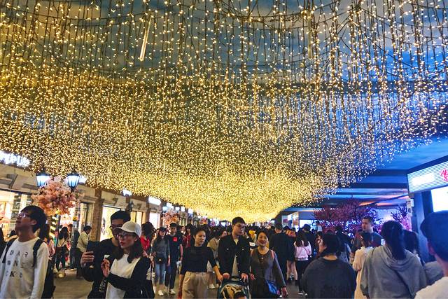 头顶黄色的小灯灯很漂亮,远远望去仿佛置身璀璨银河。