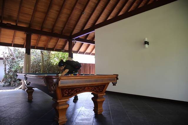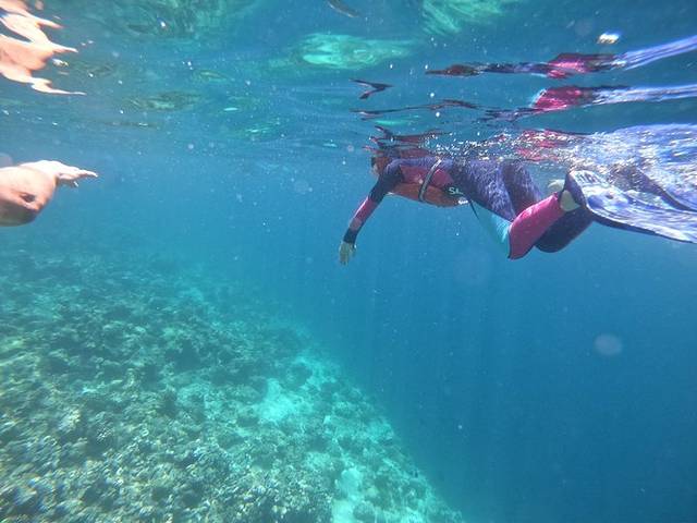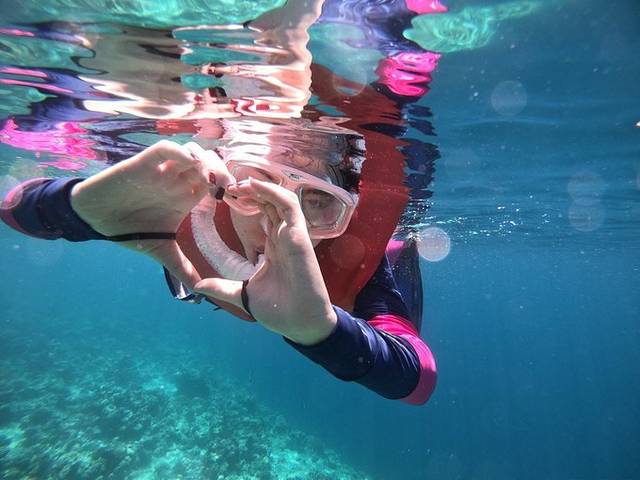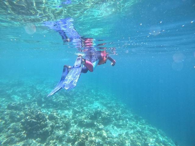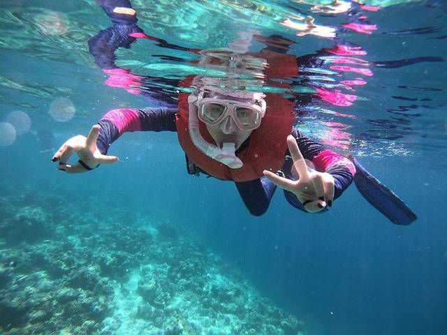 中午回屋小憩,然后就在后院的泳池里游一游,试试浮潜设备。
