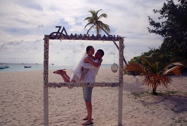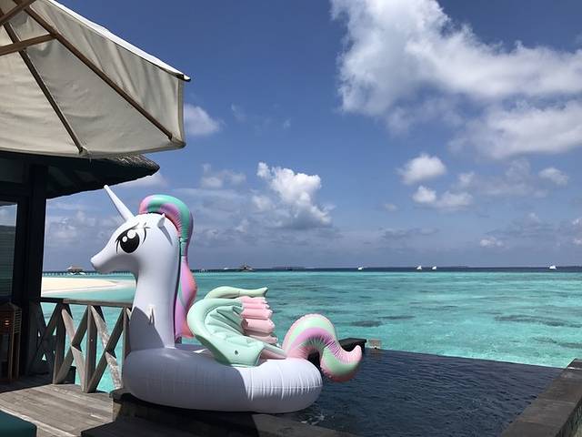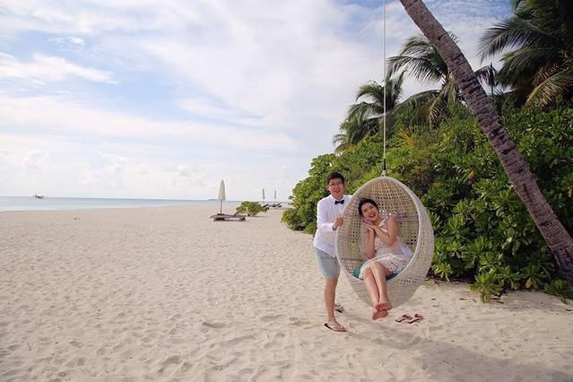 比较经典的是6天4晚,两沙两水。由于平时工作比较忙,好不容易休婚假,所以就想多玩玩,然后找代理预定的7天5晚。这里要注意,很多旅行社或代理说的7天5晚其实是在 马累 住一晚,但是据说 马累 的住宿条件很差,还不如国内的快捷酒店,所以这里一定要跟旅行社或代理强调是在岛上住五晚。由于是第一次去海岛度假,所以想各种房型都体验一下,所以在怡橙假期选择了两晚沙屋,一晚日出水屋,两晚日落水屋。